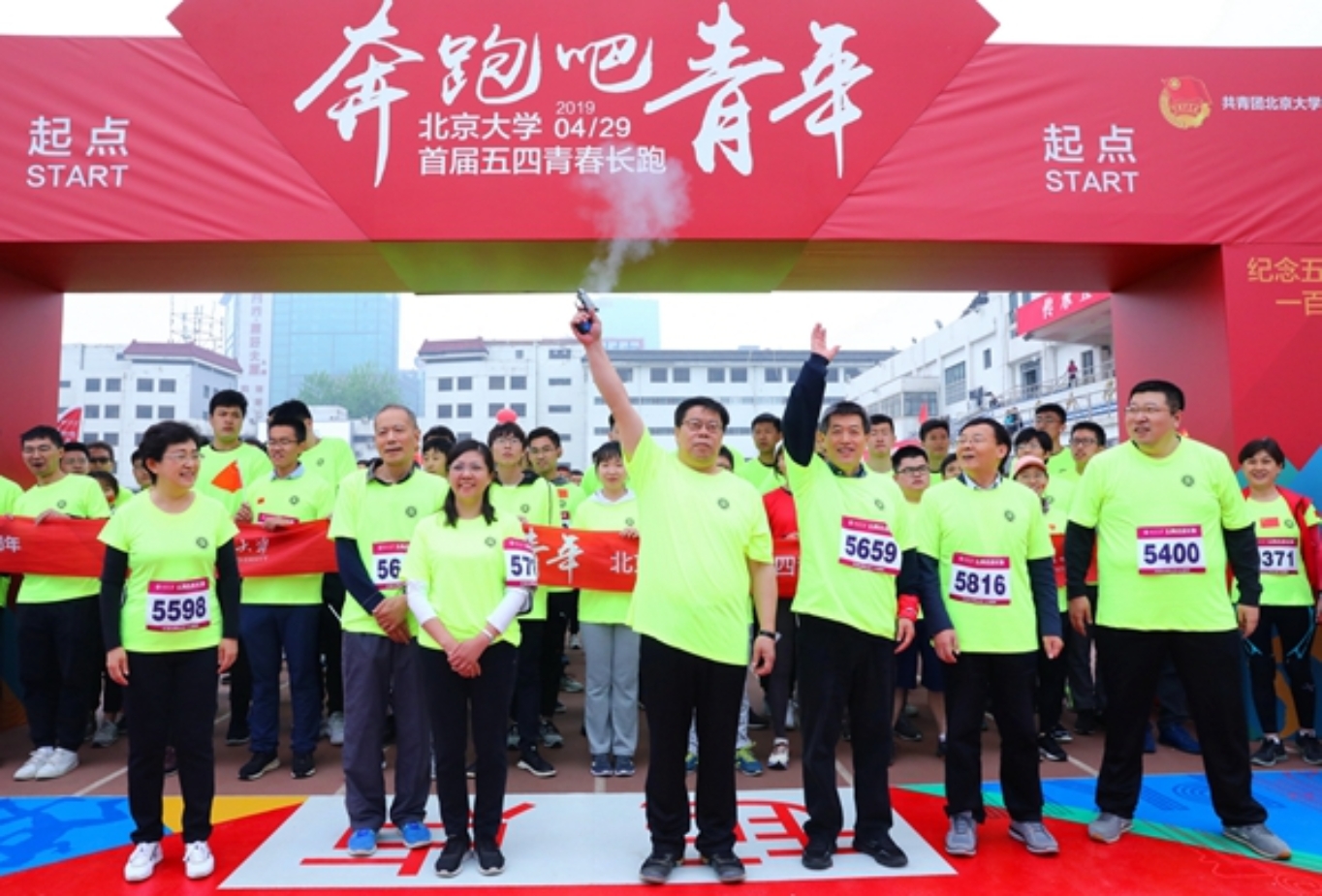2019年4月29日早9时,随着校党委书记邱水平的鸣枪令响,5400位北大师生,从五四体育场出发,迈开了通往圆明园的5400米的奔跑步伐。